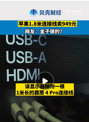 苹果上架1.8米连接线卖949元,网友吐槽:金子做的?你会买吗?