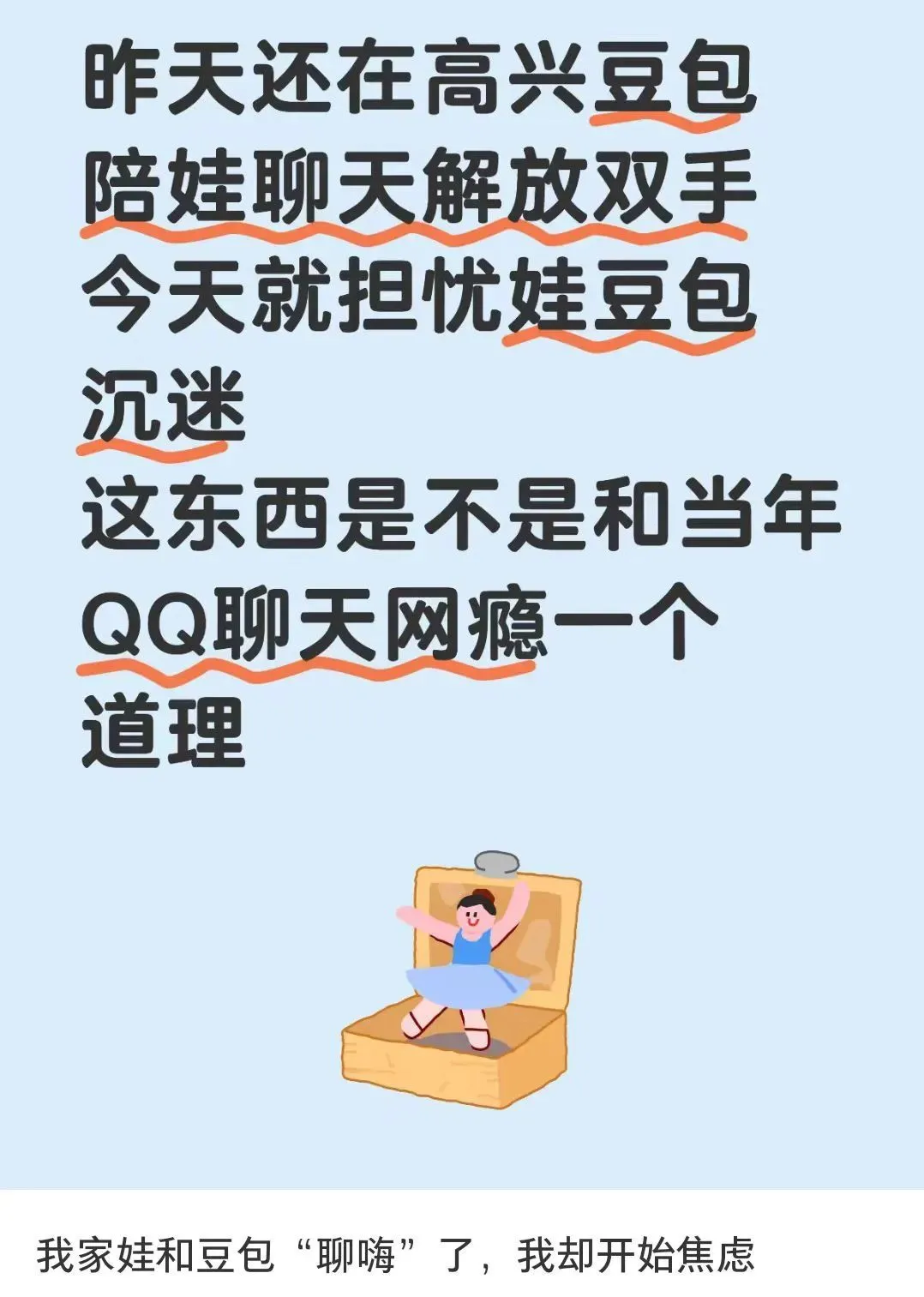 “天天玩 AI,会和玩游戏一样戒不掉的。”“天天拿 AI 写作业,不会独立思考了怎么办。”“天天和 AI 聊天,思维习惯被改变了,和真人对话可咋办?”