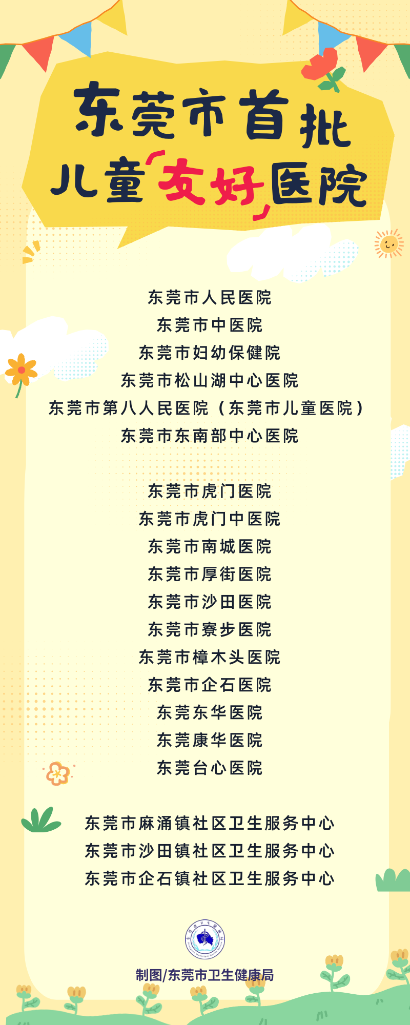 为此,今年以来,东莞市卫生健康局组织全市医疗机构积极开展儿童友好医院自评、申报、评估、复核等工作。最终,20家医疗机构符合东莞市儿童友好医院有关标准,入选东莞市首批儿童友好医院名单。