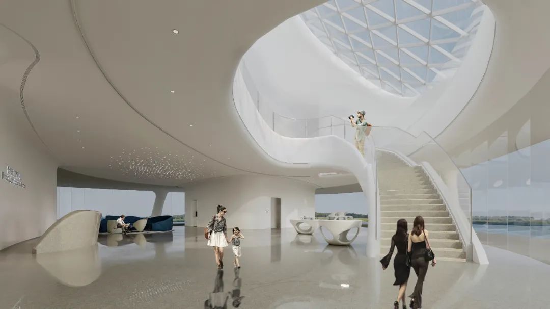 滨海文化驿站一层主要为公共休憩空间,包括休闲水吧、便民服务设施、卫生间、母婴室等;二层主要设置展示和交流空间,可用于举办产品发布、文艺展览、沙龙论坛等文化活动。