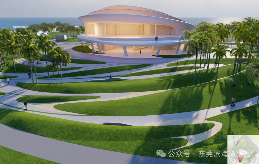 滨海文化驿站位于东莞黄金海岸(龙苗段)中段,紧邻阳光大草坪。项目投资总额约3750万元,占地面积约为1.3万平方米,建筑面积约为2278平方米,共分为两层,集文化展示、交流与互动、旅游服务、休闲游憩等功能于一体,将打造成多功能海边新型文化空间。