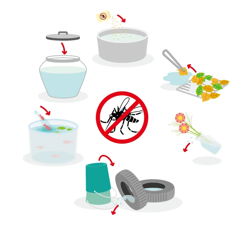 1. 注意清除积水,翻盆倒罐,清理住家及周围各类无用积水;