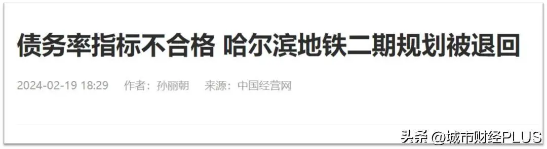 2024年年初,哈尔滨的地铁二期规划,就因为债务指标不合格,被退回。