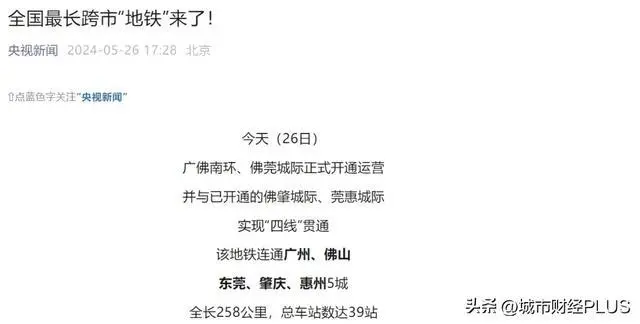 央视新闻给出的标题便是,“全国最长跨市'地铁'来了”。