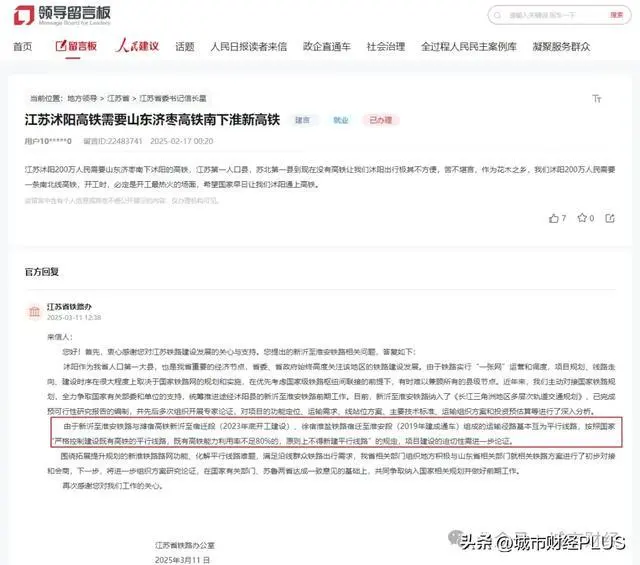 济宁官方在回复市民提问中,同样明确“国家暂不受理一般地级市的首轮城市轨道交通建设规划报批”。
