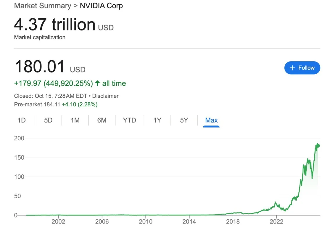 这两种叙事的差别显而易见:千亿美元市值的英伟达你没搭理,四万亿美元的英伟达你已经高攀不起。