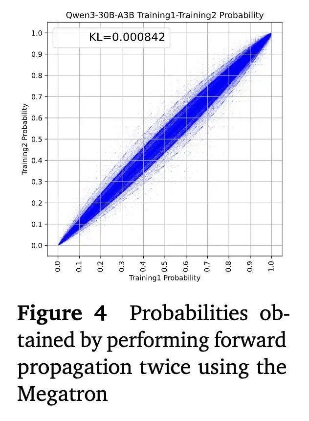 为了证明R3在缩小训练-推理差异上的有效性,研究人员使用Qwen3-30B-A3B模型进行了验证,其将推理过程中获得的路由分布缓存在SGLang上,并在Megatron框架内重放它们。