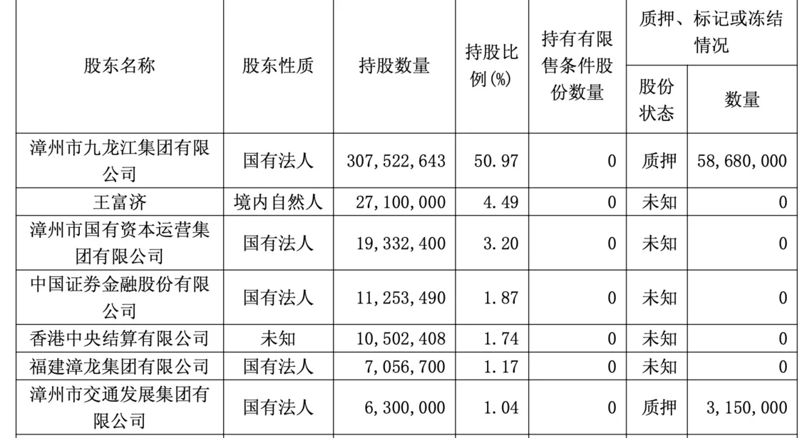 今年三季度,代表北向资金的香港中央结算减持了近900万股,减持比例为45.43%,而在二季度其曾大幅增持。另外,控股股东漳州国资方面也小幅减持了75万股。