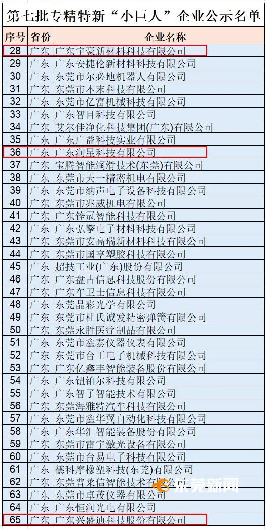 近日,谢岗镇企业培育再传捷报,广东宇豪新材料科技有限公司、广东润星科技股份有限公司、广东兴盛迪科技股份有限公司成功入选国家级专精特新“小巨人”企业名单。
