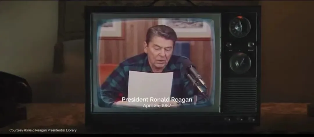 我仔细看了一遍这则广告,不长,就一分钟,画面是美国的普通人,旁白是里根的画外音,最后,过渡到老式电视机里里根在讲话的画面。