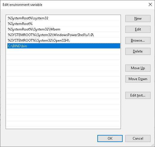 您需要通过命令行控制 BIND 的某些功能,因此将 BIND 安装目录添加到 PATH 环境变量中会方便很多。BIND 的所有命令行实用程序都存储在安装文件夹的bin 子文件夹中。