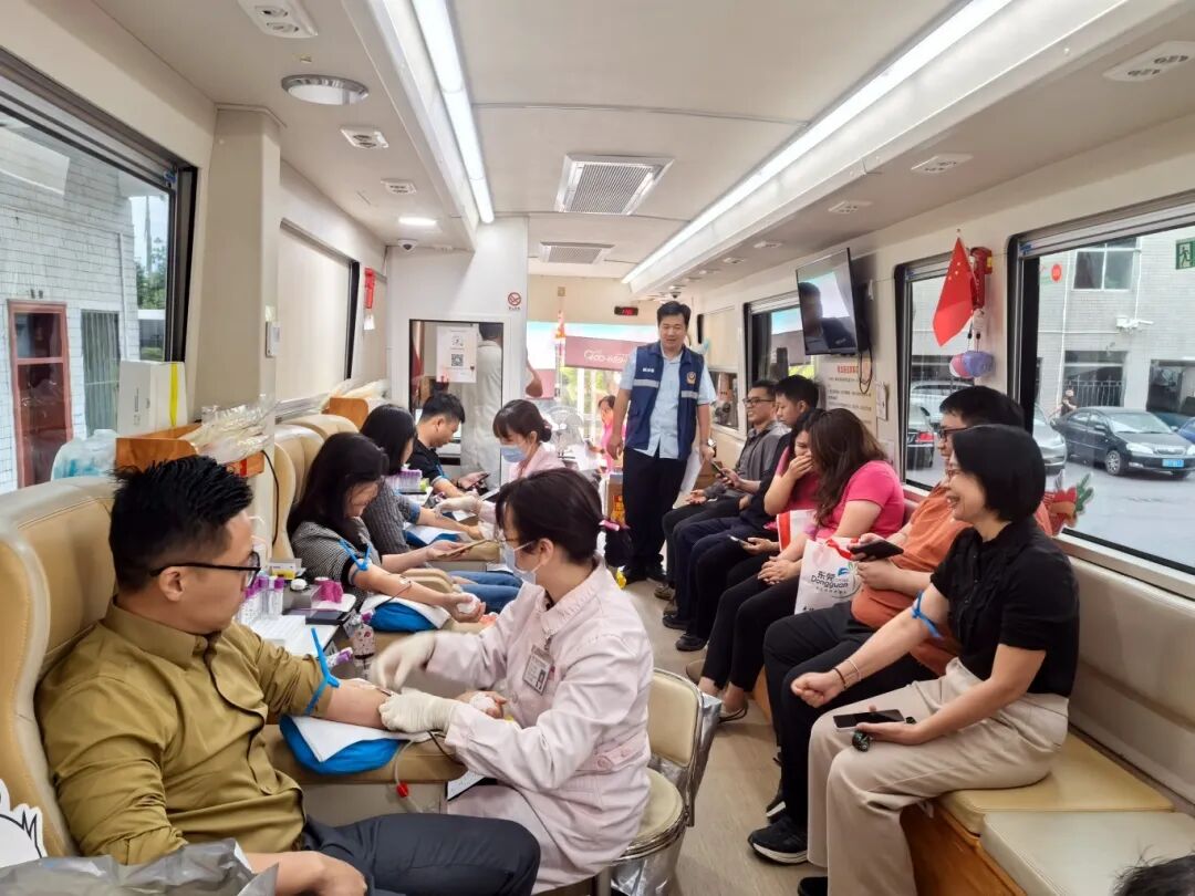 采血现场涌动着温暖与奉献的热潮。机关党员干部们纷纷挽起衣袖,在鲜红血液缓缓流入血袋的瞬间,从容与自豪之情溢于言表。