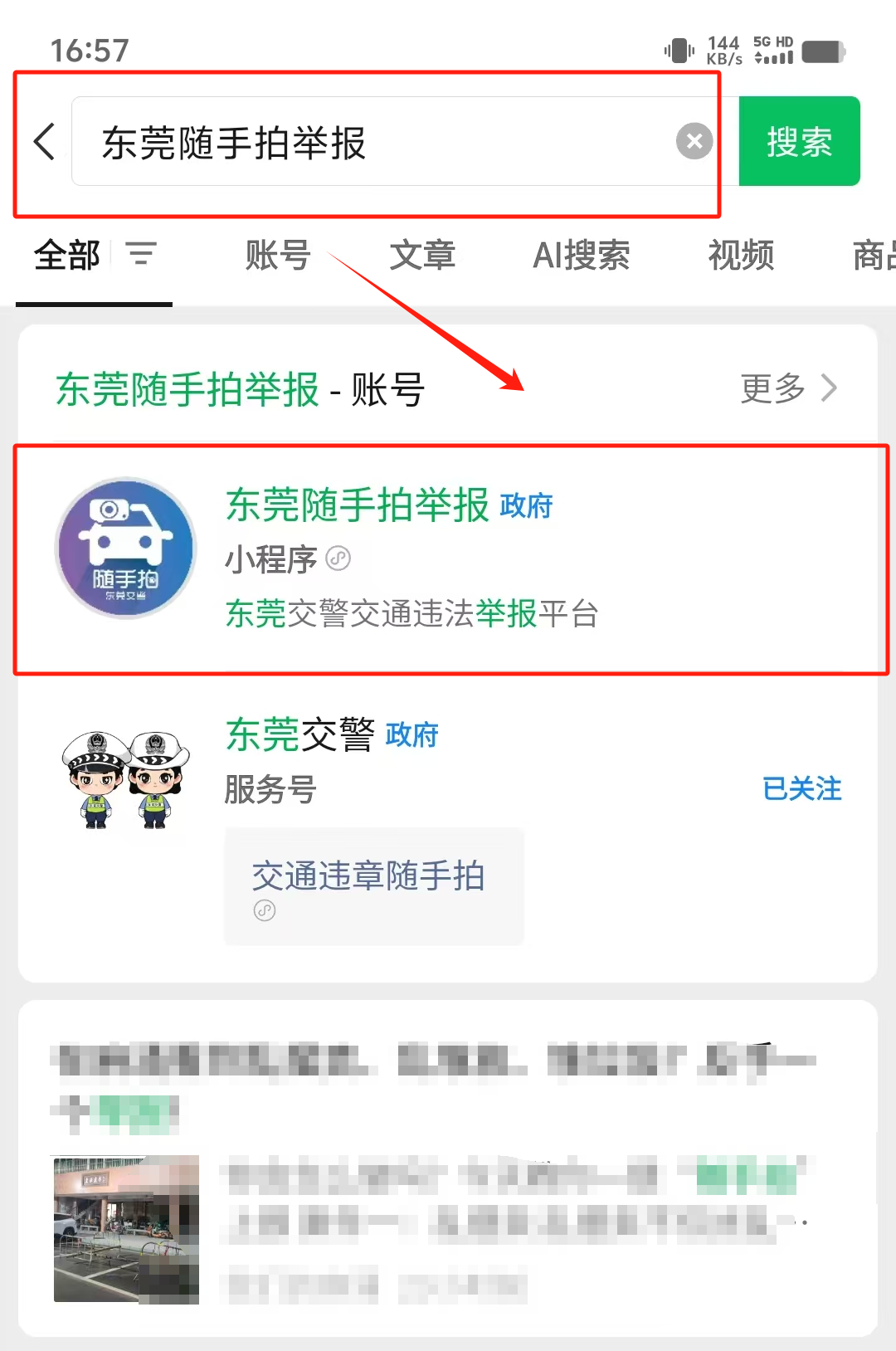 1、微信直接搜索“东莞随手拍举报”进入小程序。