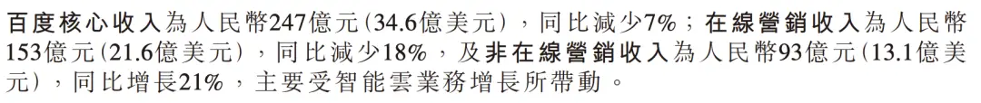 百度财报没那么坏,但绝对谈不上好——本季度百度核心营收247亿元,同比下降7%。