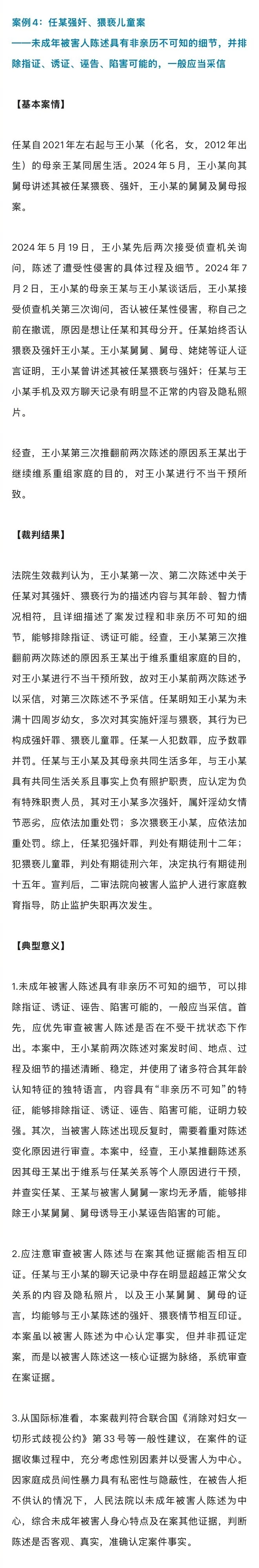 法院生效裁判认为,王小某第一次、第二次陈述中关于任某对其强奸、猥亵行为的描述内容与其年龄、智力情况相符,且详细描述了案发过程和非亲历不可知的细节,能够排除指证、诱证可能。