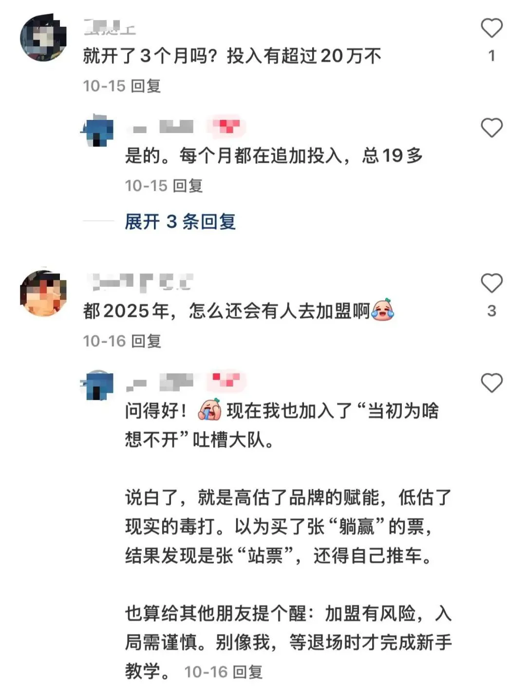 可以说,在这场绞杀里,没有赢家——连锁品牌用加盟商的血肉守住了市场份额,中小品牌在成本与流量的夹缝中苟延残喘,而加盟商,正拿着全部身家,为一场早就该结束的内卷买单。