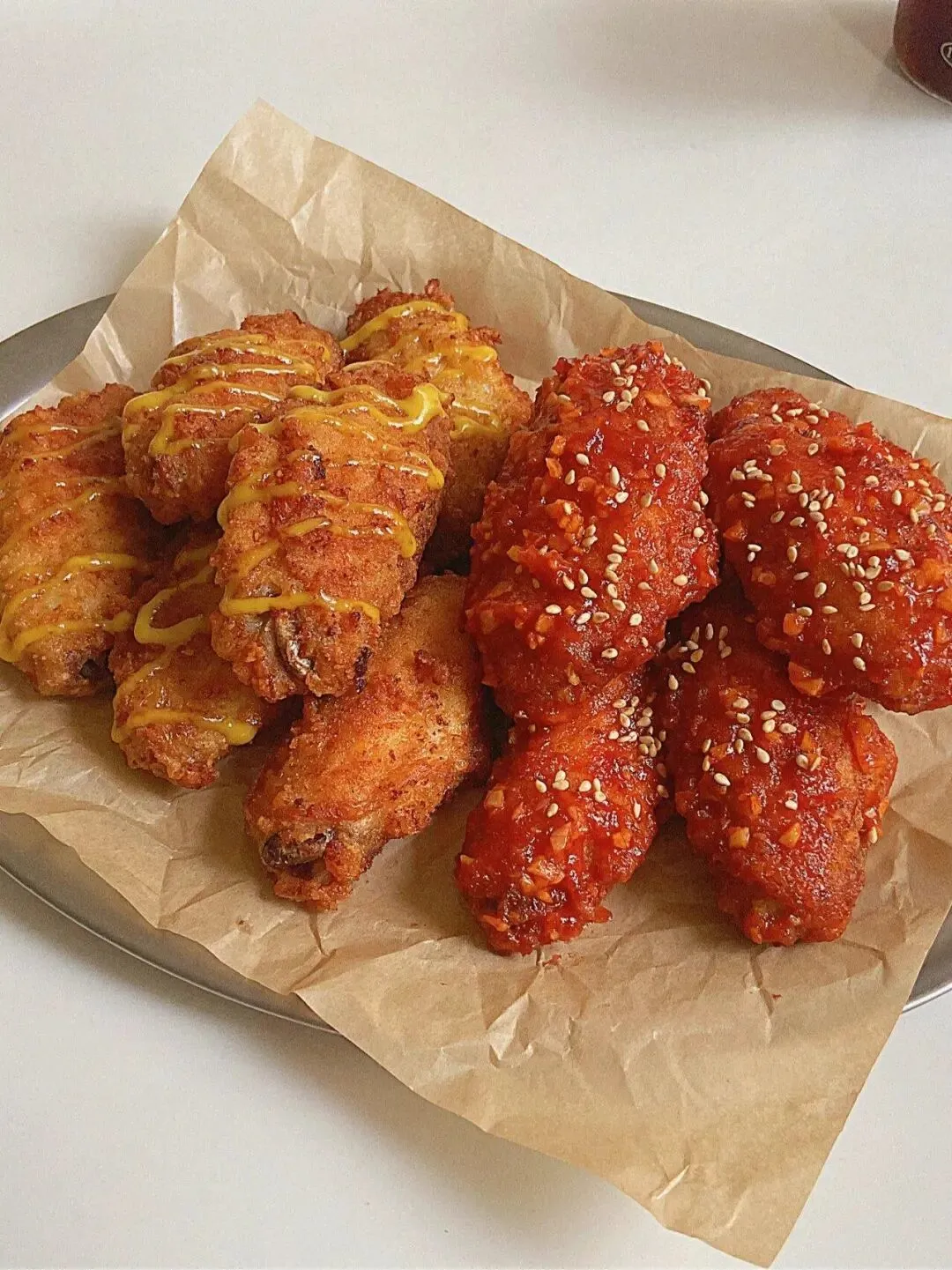 调味更是五花八门,不像美式主要靠原味,韩式炸鸡全靠酱料撑场面——甜辣酱、蒜香酱油、蜂蜜芥末酱,有的还撒海苔粉。