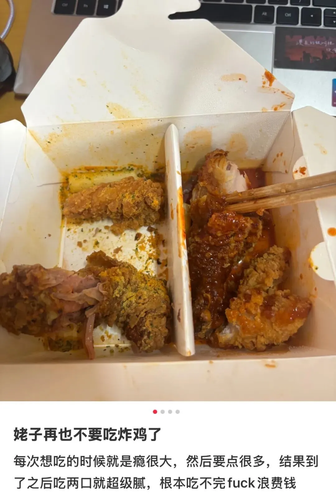 而其中韩式炸鸡大多带有冲击性的酱料作为调味,重口味酱料带来的“第一口惊艳”,但很快就被齁甜腻口反噬。