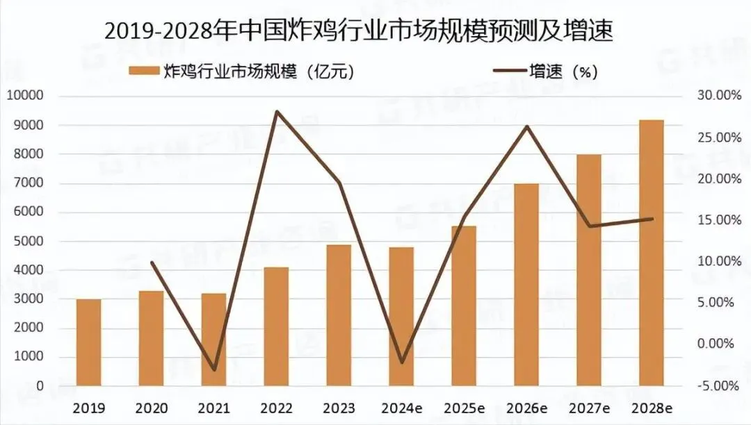 预计2025-2028年我国炸鸡行业市场规模将增长至9216.63亿元。