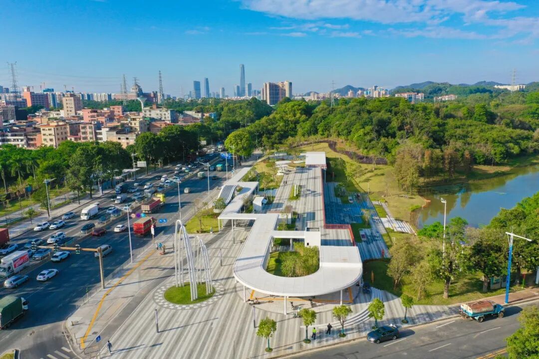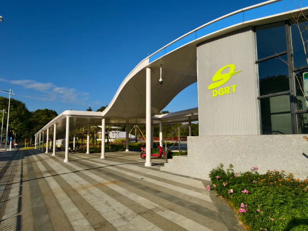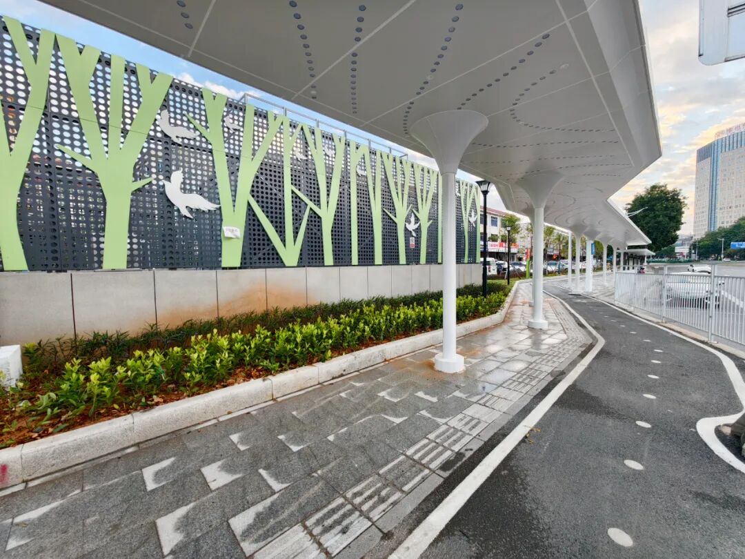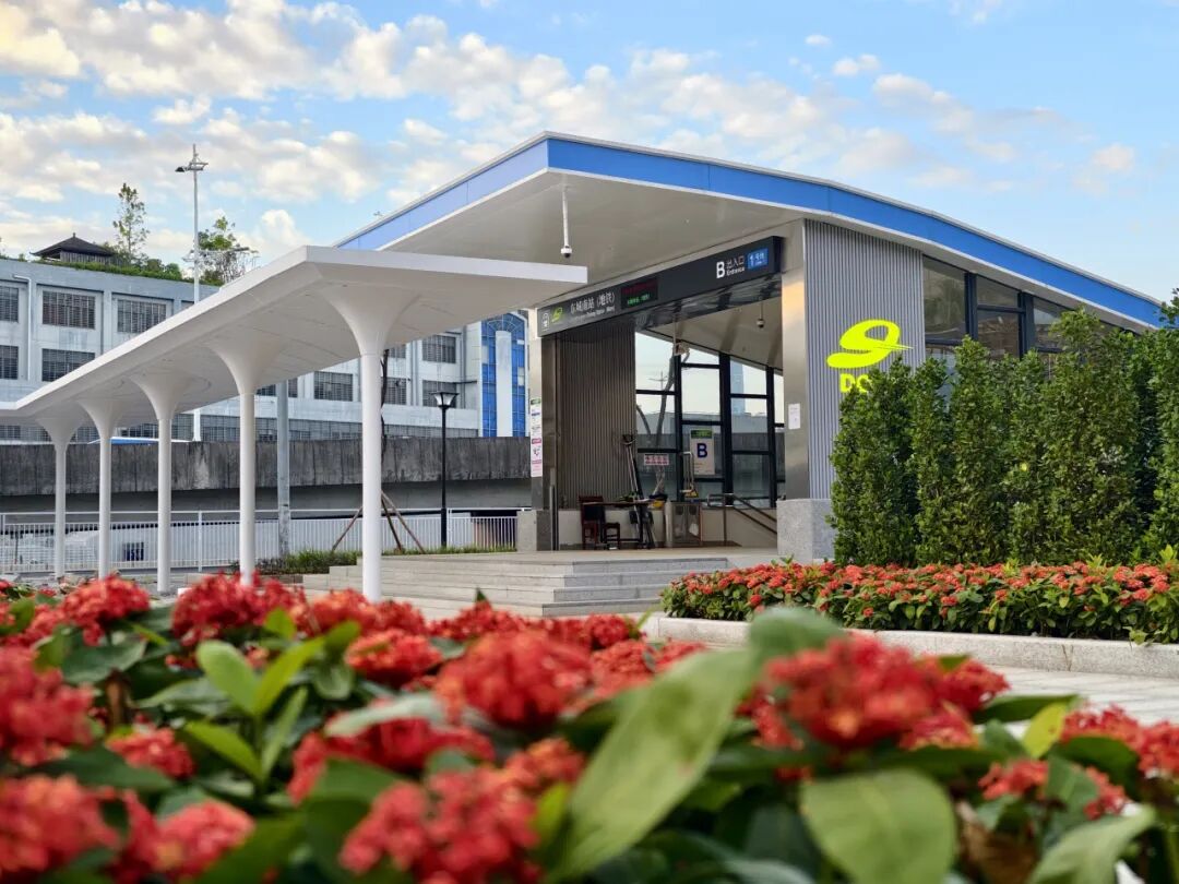 立新站周边聚合了东莞市妇女儿童活动中心、东城体育公园、黄旗南香遇走廊等城市公共空间,站体设计暗含“活力纽带”的巧思。简洁大气的站亭与周边现代化建筑群落相融,出入口标识系统清晰明了,无障碍设施贯穿全程,让不同年龄段、不同需求的市民都能便捷通行。站区绿化以层次丰富的乔木、花卉为主,与香遇走廊的景观带形成呼应,营造出“出地铁即入公园” 的惬意感。