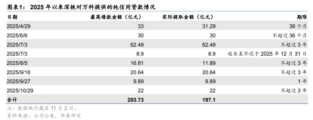 华泰证券统计显示,截至2025年11月2日,万科年内已偿付境内外债券本息约303.25亿元,深铁信用借款用于偿付债券本息165.22亿元,约占55%;另有一部分有担保借款也用于偿还公开债,股东借款已成为万科债券兑付的重要资金来源。