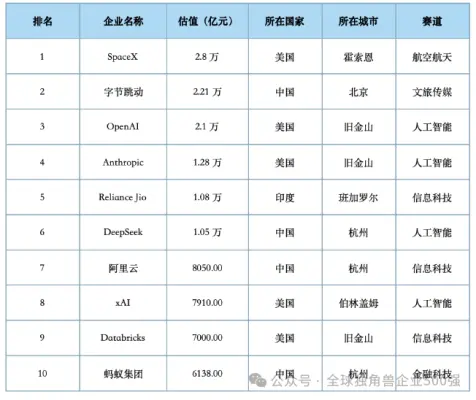 在近日公布的《2025全球独角兽企业500强报告》中,DeepSeek凭借1.05万亿元的估值,力压阿里云、蚂蚁集团等一众企业,成为了仅次于字节跳动的中国第二大、全球第六大独角兽企业。