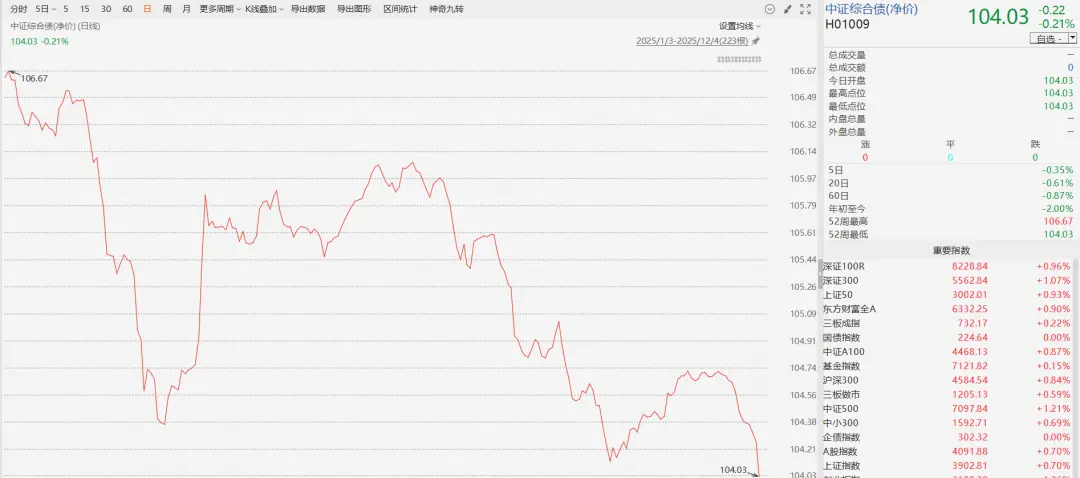 如果用剔除票息的中证综合债净价指数看,波动就很清楚了。今年以来持续震荡下行,11月中旬开启新一轮下跌,4日更是跌出年内低位,都跌出一种经济强力复苏的感觉了。