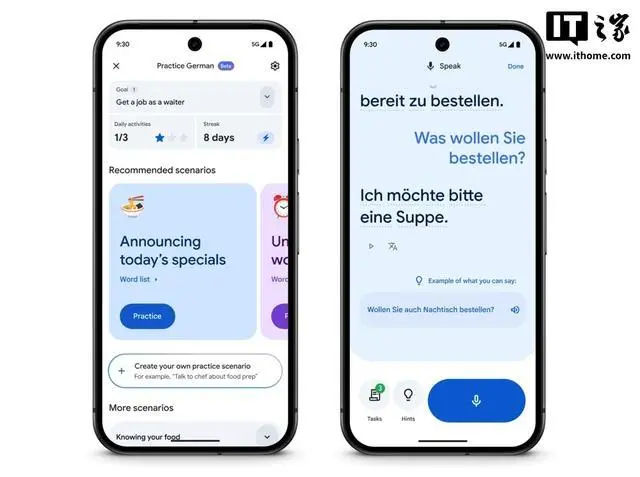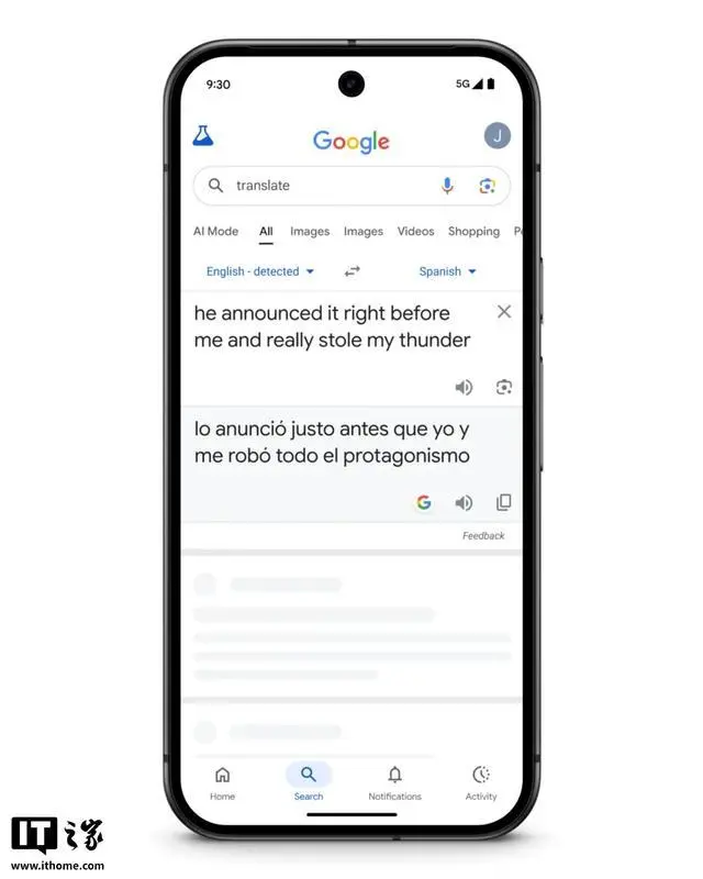 IT之家在此援引官方新闻稿,目前 Gemini 驱动的谷歌翻译已登陆美国和印度地区的 iOS 和安卓 App,号称可实现“最先进的翻译质量”,在处理习语、地方表达和俚语等子句时更加顺滑,目前已适配英语、西班牙语、印地语、中文、日语和德语等 20 种语言