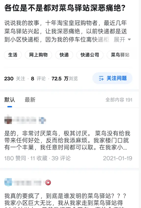 在黑猫投诉平台上,关于 “快递” 的投诉有120多万条,其中关于驿站的投诉占据了半壁江山;在知乎上,网友的吐槽更是直抒胸臆,一点面子不留。