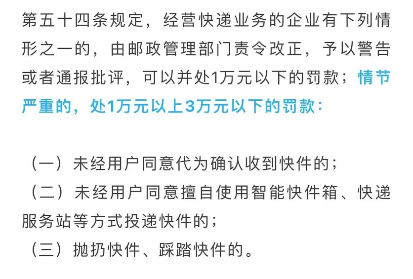 2024年3月实施的《快递市场管理办法》成了转折点,其中明确规定:“未经用户同意,不得擅自将快件放入驿站。”