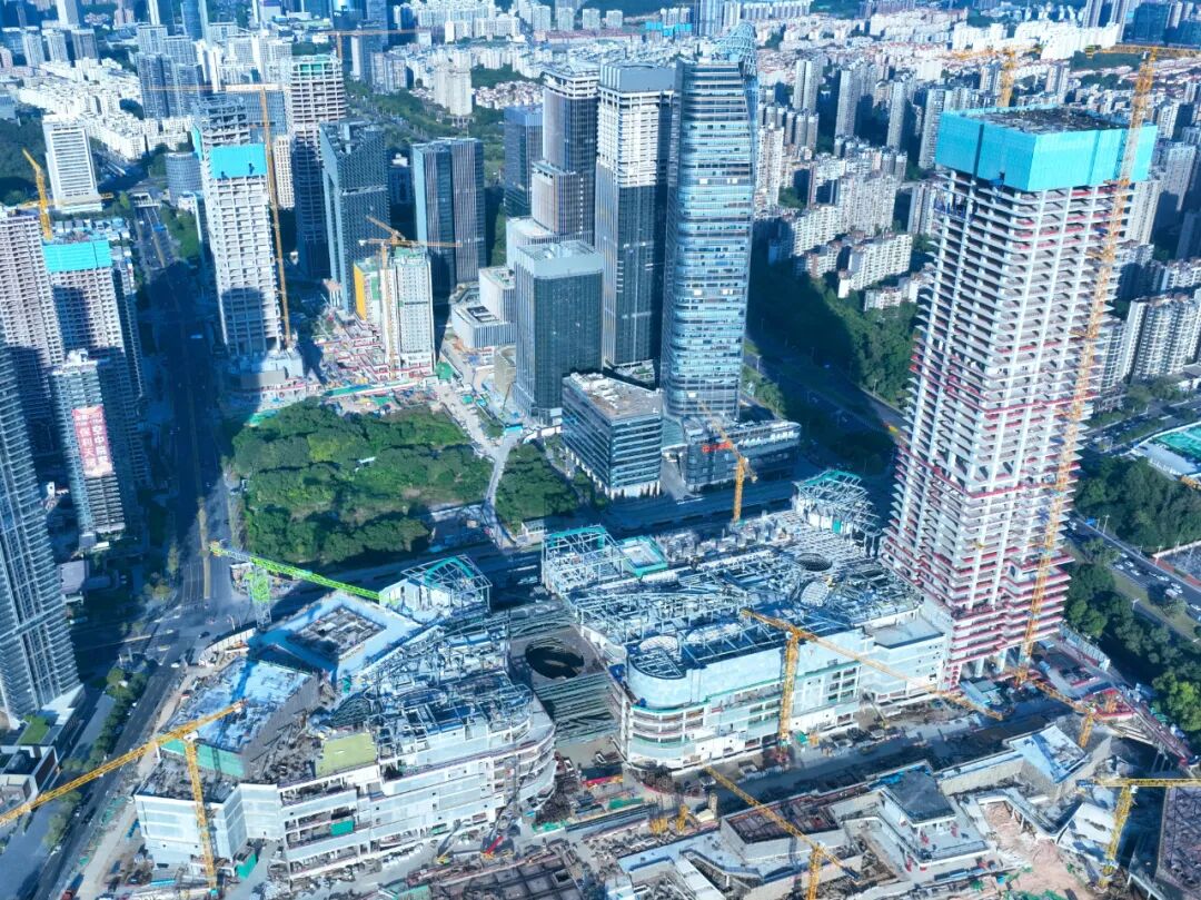 今年6月,华润置地中心地标项目地铁6号线、8号线换乘站点与轨行区等共构工程主体结构全面封顶。7月,华润置地中心地标项目万象城区域也迎来主体结构全面封顶。