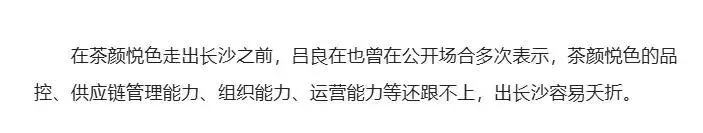 茶颜悦色创始人吕良就曾表示过,茶颜悦色的慢扩张,是因为在品控、组织能力以及供应链能力上仍有不足,出去后可能会面临无法控制的局面。