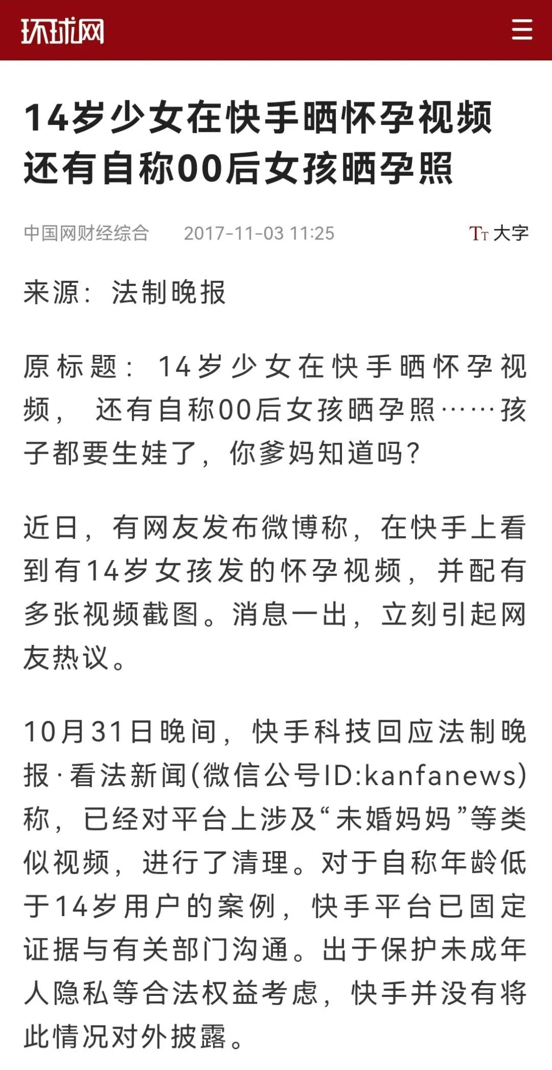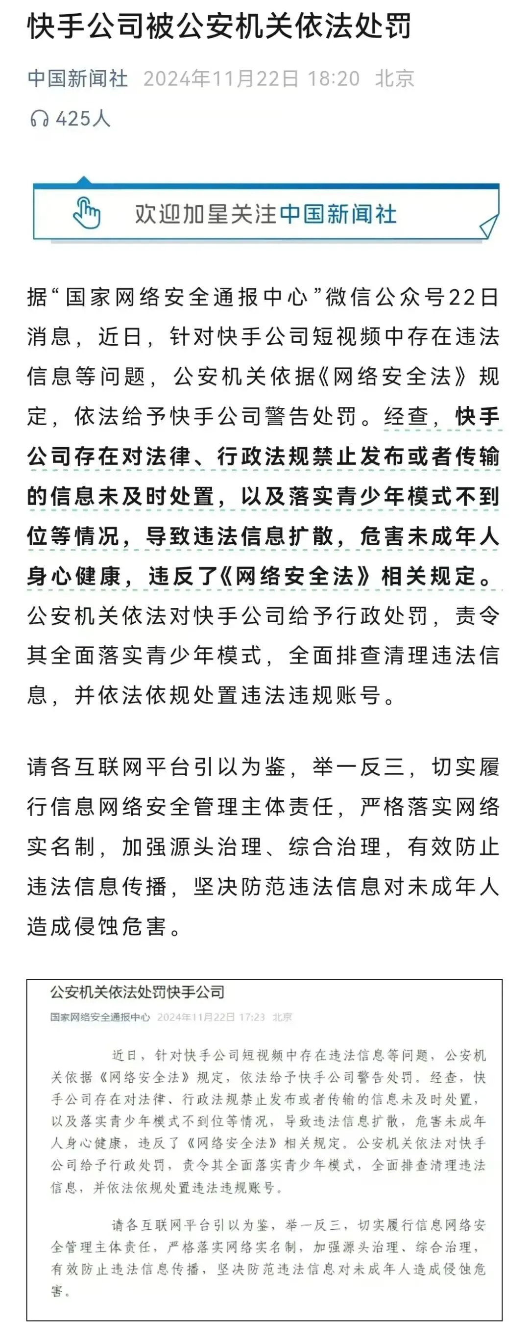 到了2024年,人家平台都升级多少个版本了,青少年还能害得快手被处罚,理由是: