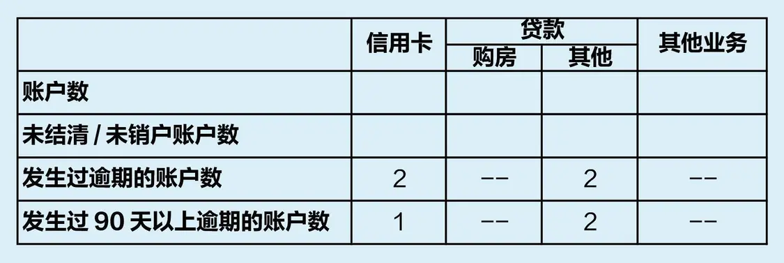 情况2:部分逾期信息符合政策条件,信用报告中的逾期账户数减少(如下图所示)或历史逾期月数等数值减少。