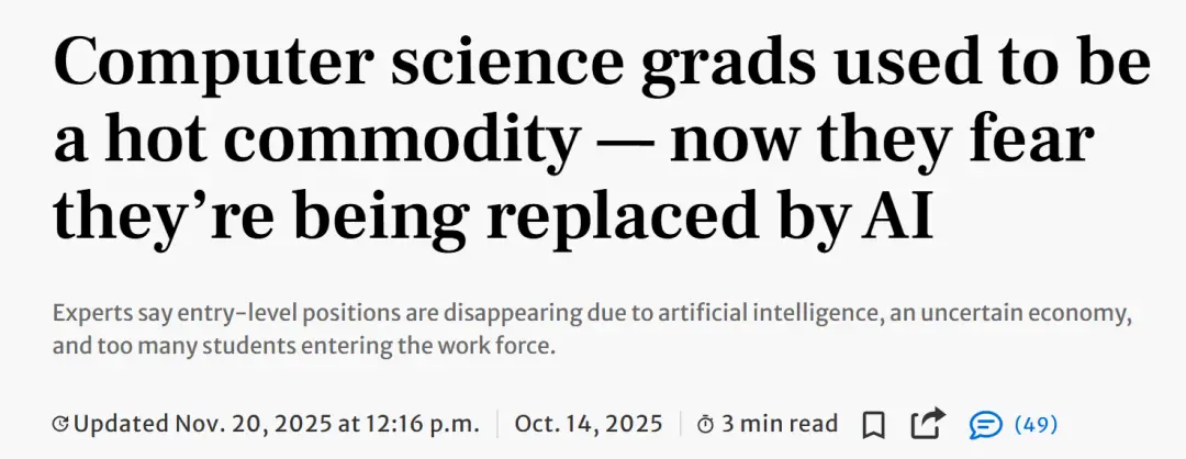 而且AI,也没有给年轻的CS毕业生们留下丝毫活路。