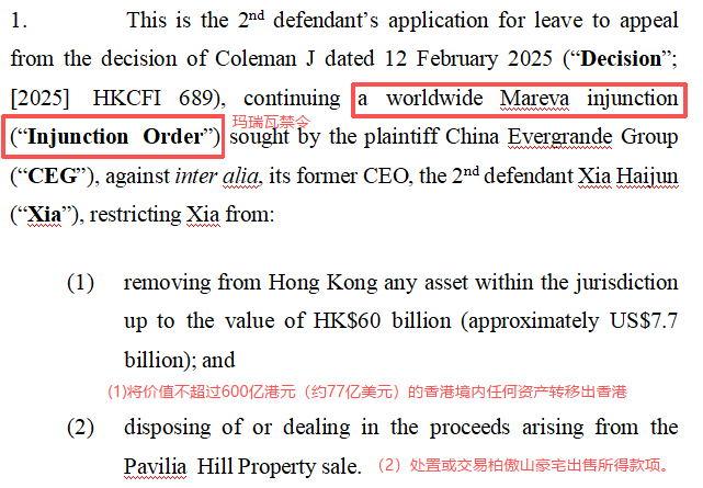 1、限制夏海钧将价值高达600亿港元的香港境内任何资产转移出香港;