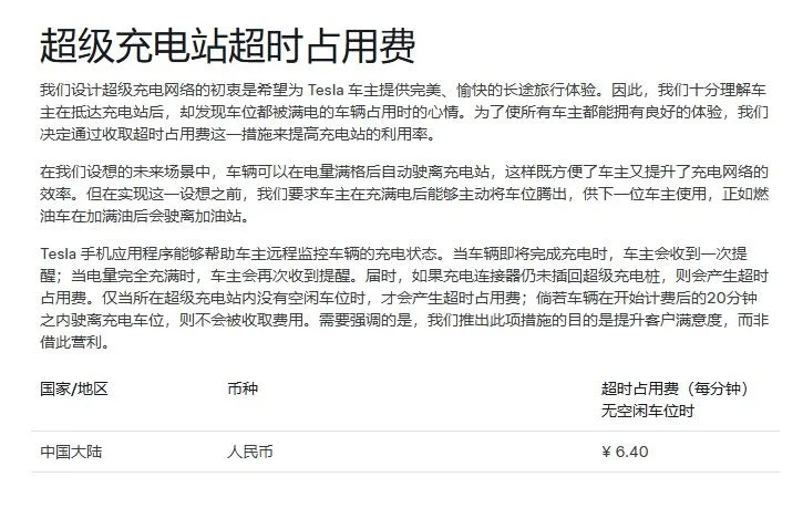 特斯拉调整超充站超时费:没空位才收费 宽限20分钟