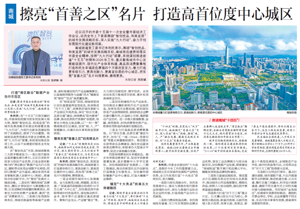 记者:“十五五”时期特别是2026年,南城将如何主动担负起走在前、作示范、挑大梁的责任,立足打造全市“首善之区”的战略定位,为东莞打造高首位度的宜居宜业宜游城市中心?