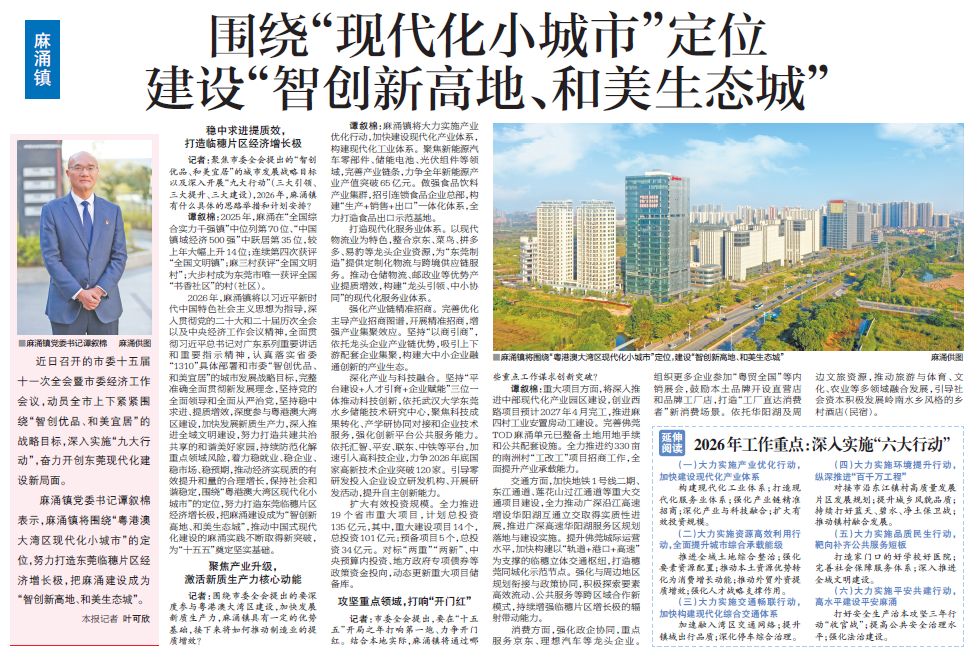 记者:市委全会提出,要在“十五五”开局之年打响第一炮、力争开门红。结合本地实际,麻涌镇将通过哪些重点工作谋求创新突破?