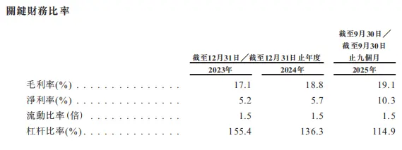 报告期内公司毛利率分別为17.1%、18.8%、19.1%,净利率从2023年的5.2%提升至2025年三季度末的10.3%。