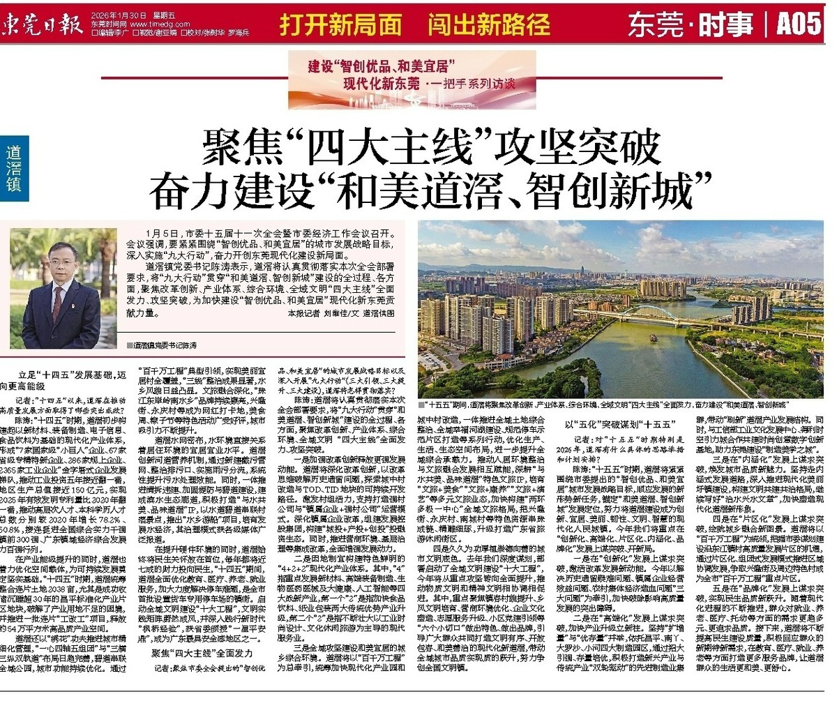 ■“十五五”期间,道滘将聚焦改革创新、产业体系、综合环境、全域文明“四大主线”全面发力,奋力建设“和美道滘、智创新城”