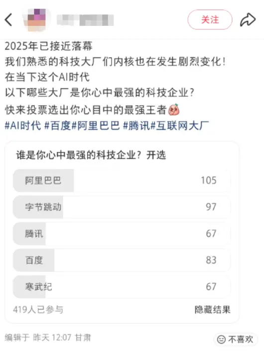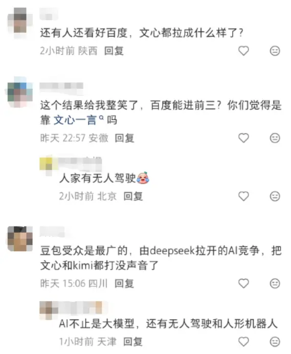 有网友曾经发起AI时代公司排名投票,一则评论精准道出现状:“百度之所以能继续排名前三,都是因为萝卜快跑”。