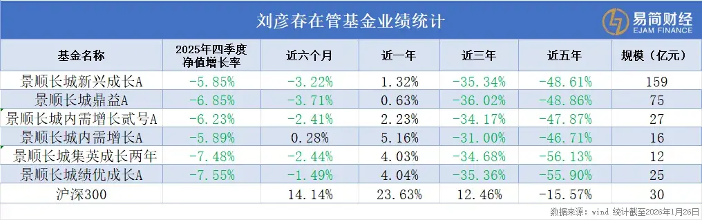 Wind显示,刘彦春在管基金有6只,目前总管理规模有314.75亿元。