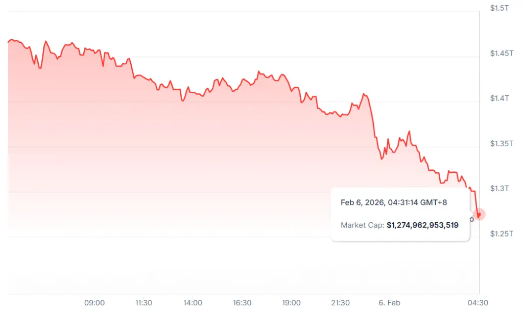 周四美股尾盘,比特币加速下挫至6.3万美元附近。自去年10月触及峰值以来,比特币已累计下跌超过48%,目前徘徊在2024年10月价格水平附近。总市值也同步大幅缩水,从峰值2.48万亿美元跌至1.27万亿美元。