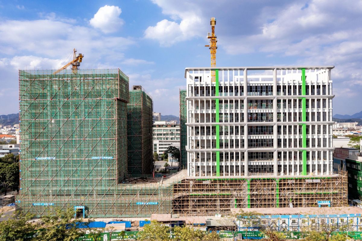 走进电将军先进储能增资扩产项目现场,塔吊运转不停,建筑工人各司其职,一栋栋现代化厂房拔地而起、初具规模,处处涌动着建设热潮。据项目负责人介绍,目前项目主体结构已全部完成封顶,装修施工工作正有序推进,预计今年5月完成项目交付,6月底前完成全部验收流程,届时一座现代化的储能产业智造基地将正式亮相塘厦。