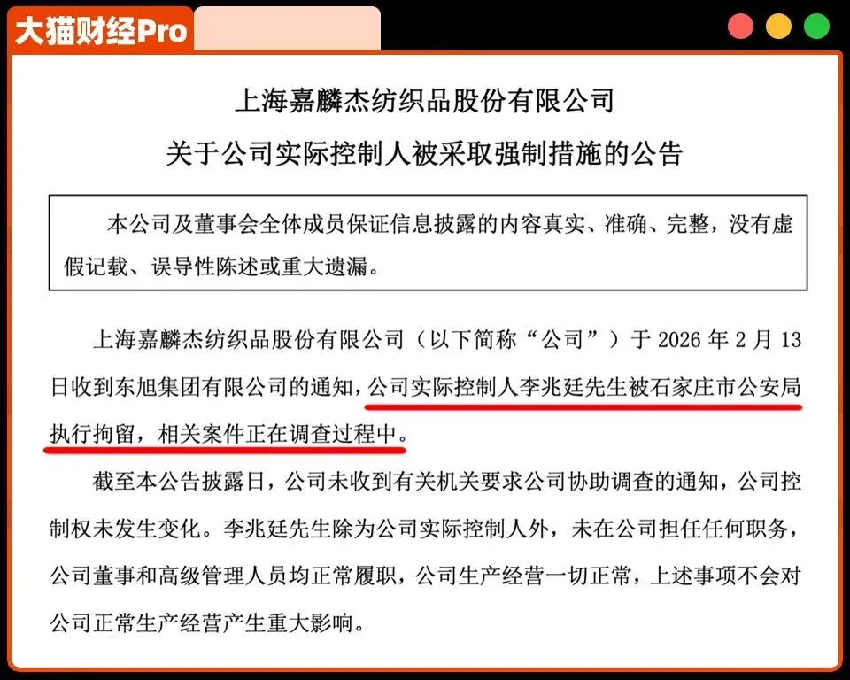 春节前,嘉麟杰发公告,实控人李兆廷被拘留,至于为啥,公告没说。