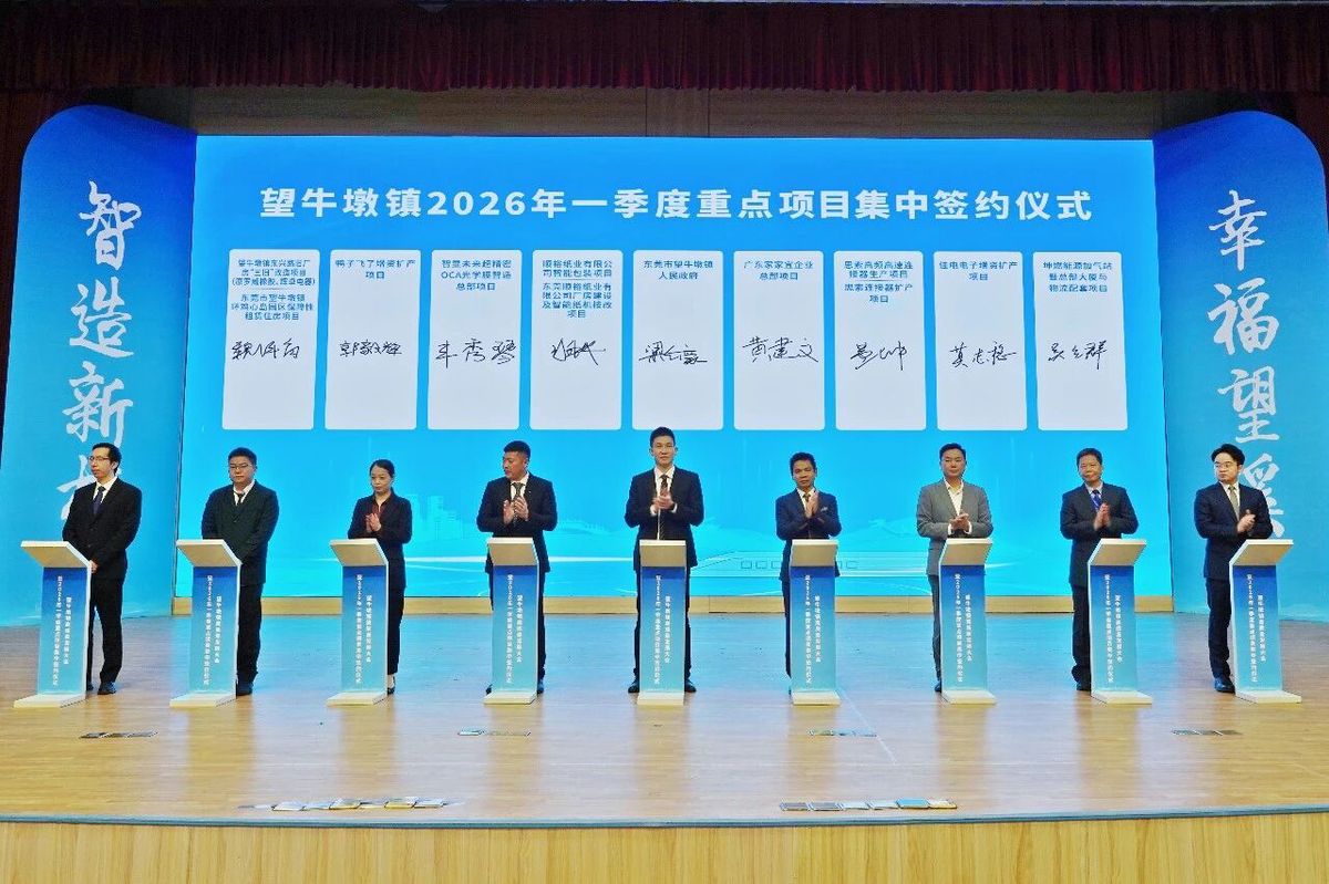 日前,望牛墩镇召开高质量发展大会暨2026年一季度重点项目集中签约仪式,深入贯彻落实全省高质量发展大会和全市“投资强基 实干兴莞”动员部署大会、“资本赋能 服务强企”动员部署大会精神,锚定“十五五”开局目标,起而行之、苦干实干,全力冲刺一季度“开门红”,加快建设“智造新枢、幸福望溪”的现代化望牛墩,共同谱写望牛墩高质量发展的崭新篇章。