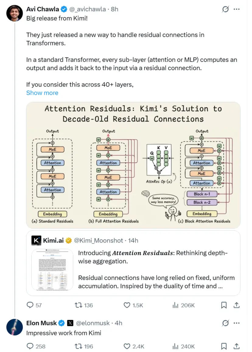 马斯克亲自点赞,Kimi动了十一年没人敢碰的东西