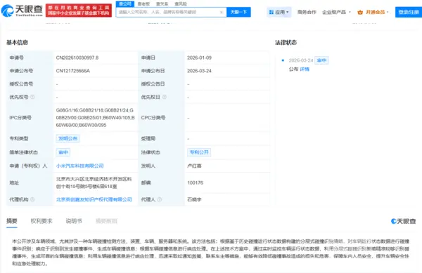 小米汽车公布车辆碰撞检测专利:自动通知救援联系车主