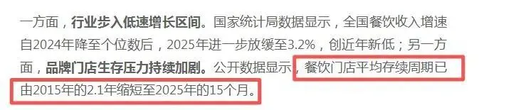 根据赢商网不完全统计,2025年,仅商场餐饮就有15000家闭店,品牌平均存续周期只有15个月,远低于10年前的水平。